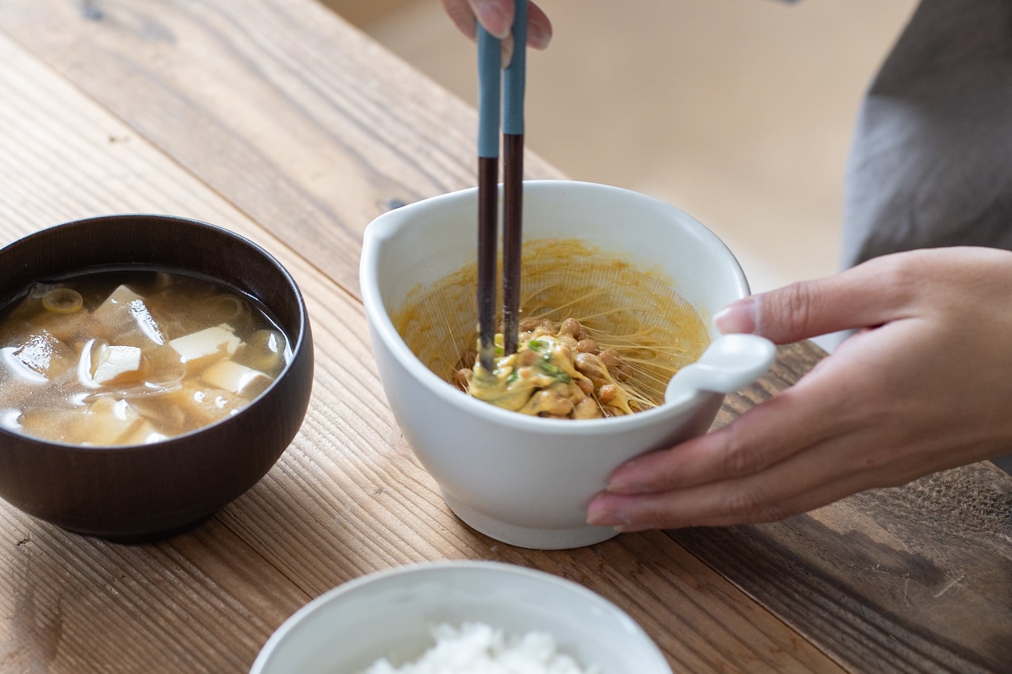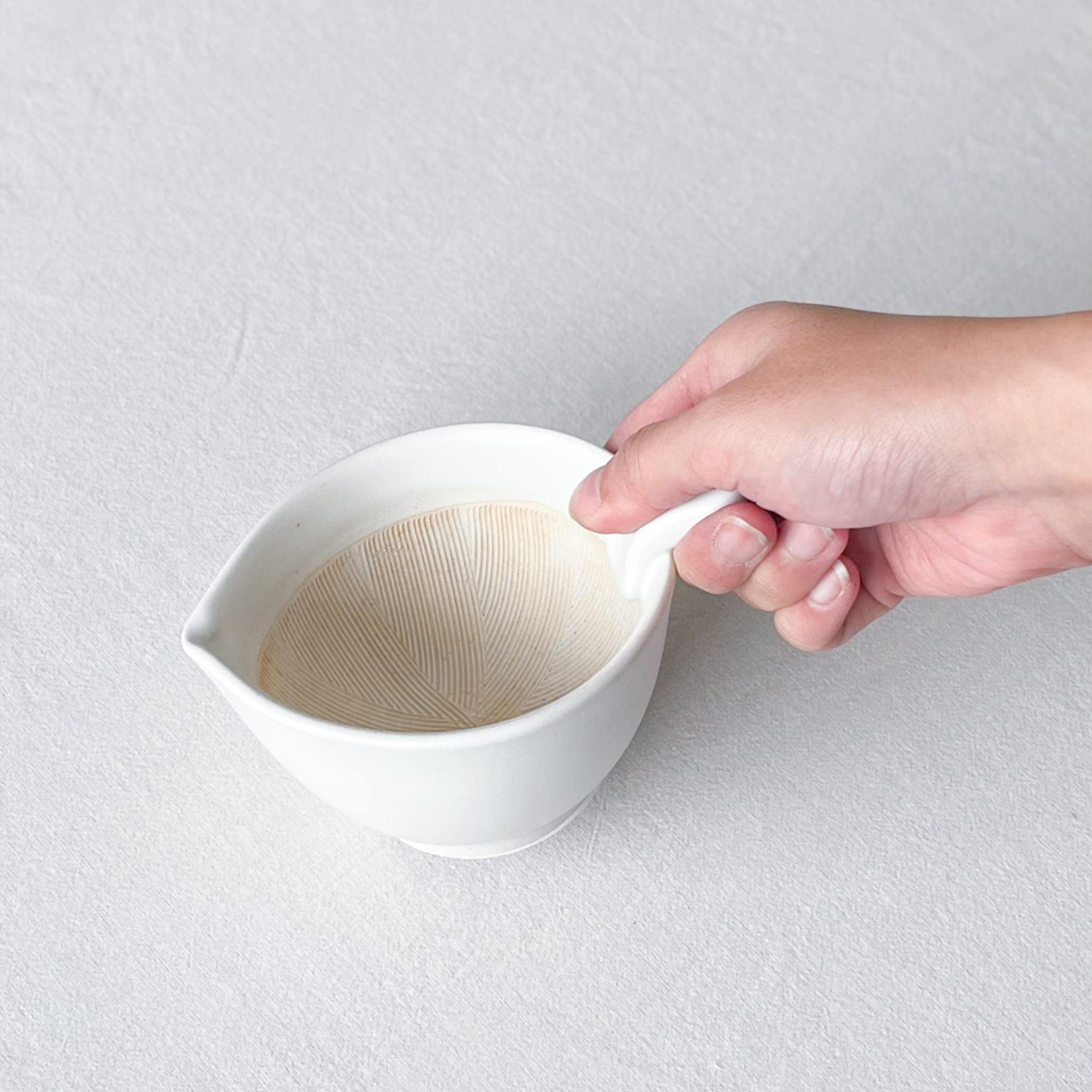 内側にすり鉢のようなはけ目がついており、納豆がふっくらよくまざるようになっています。一つひとつ手作業でつけられるハケ目の美しさに、職人の技が光ります。