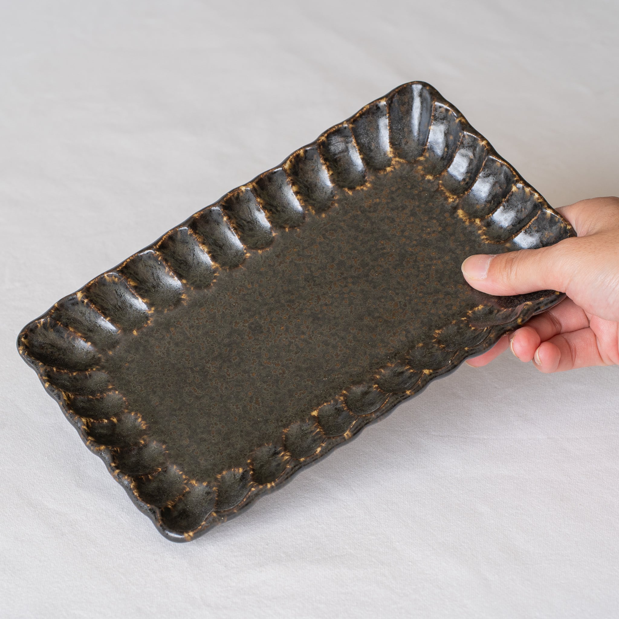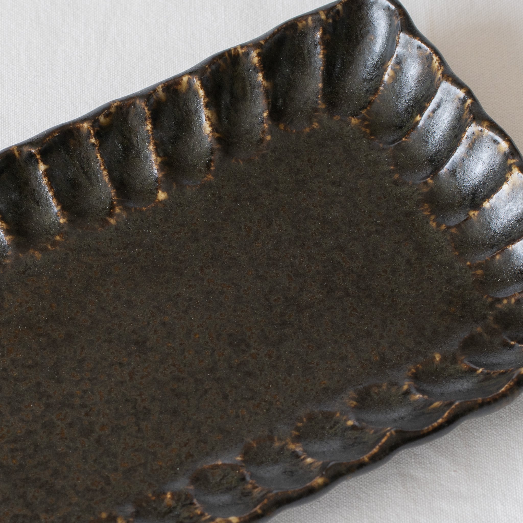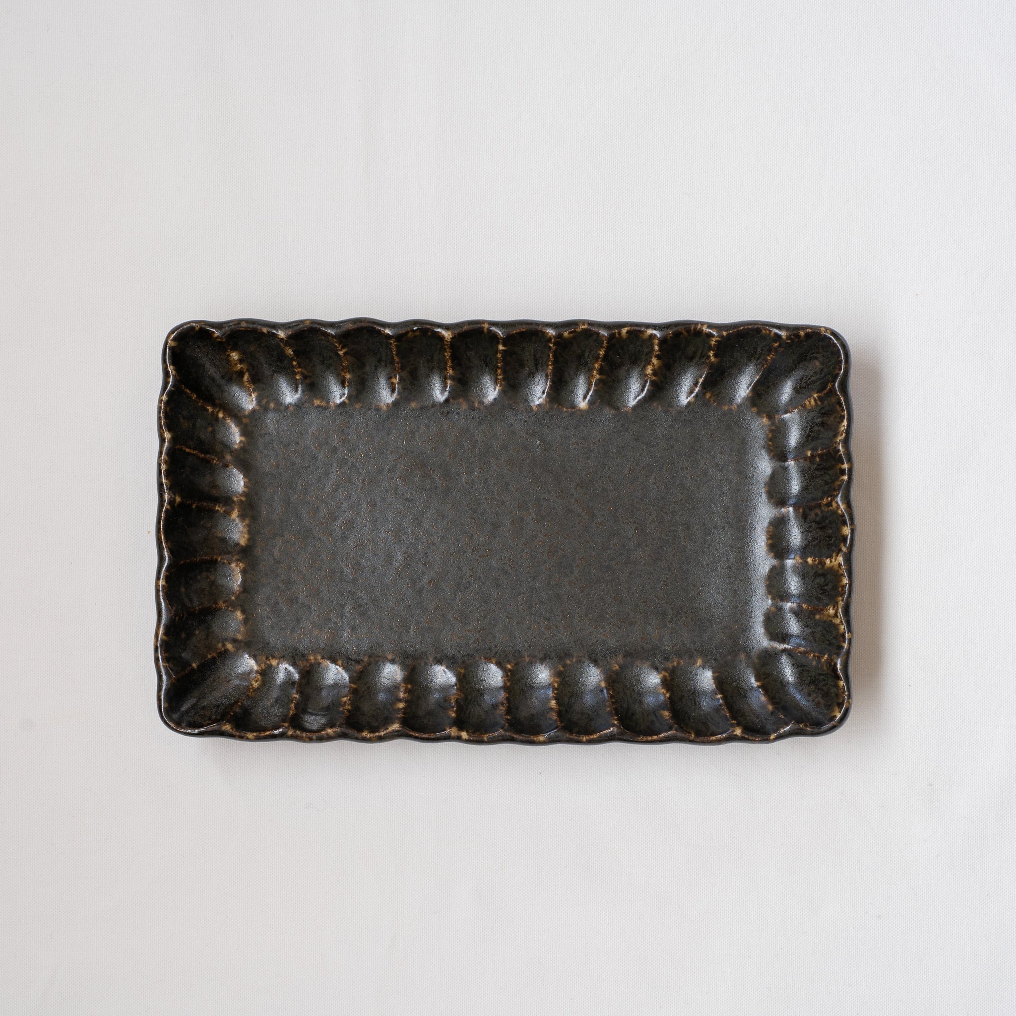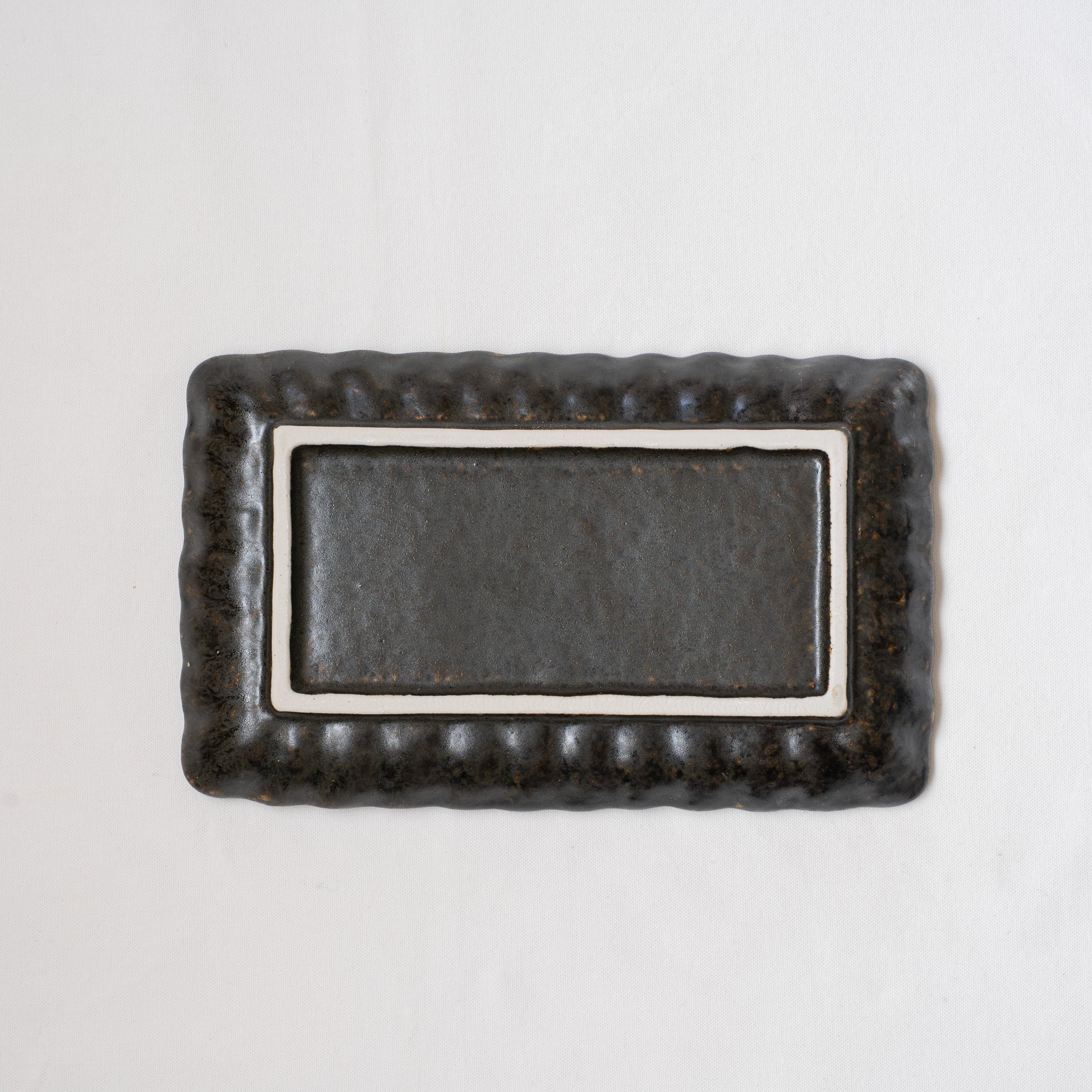 白は料理をのせる面に少しひっかいたような凹凸があり、黒はフチの部分に茶色の焼き跡が見られます。デザインとしてご理解の上、ご検討いただけますと幸いです。