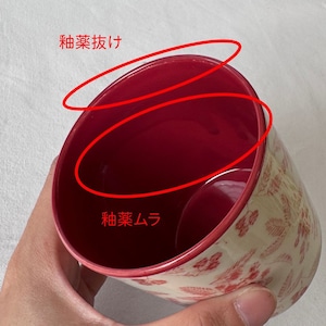 釉薬の抜け、ムラや柄のズレ、カスレ等が見られます(画像参照)。以下の注意書きをご覧の上、焼き物の特性としてご理解いただきますようお願いいたします。
