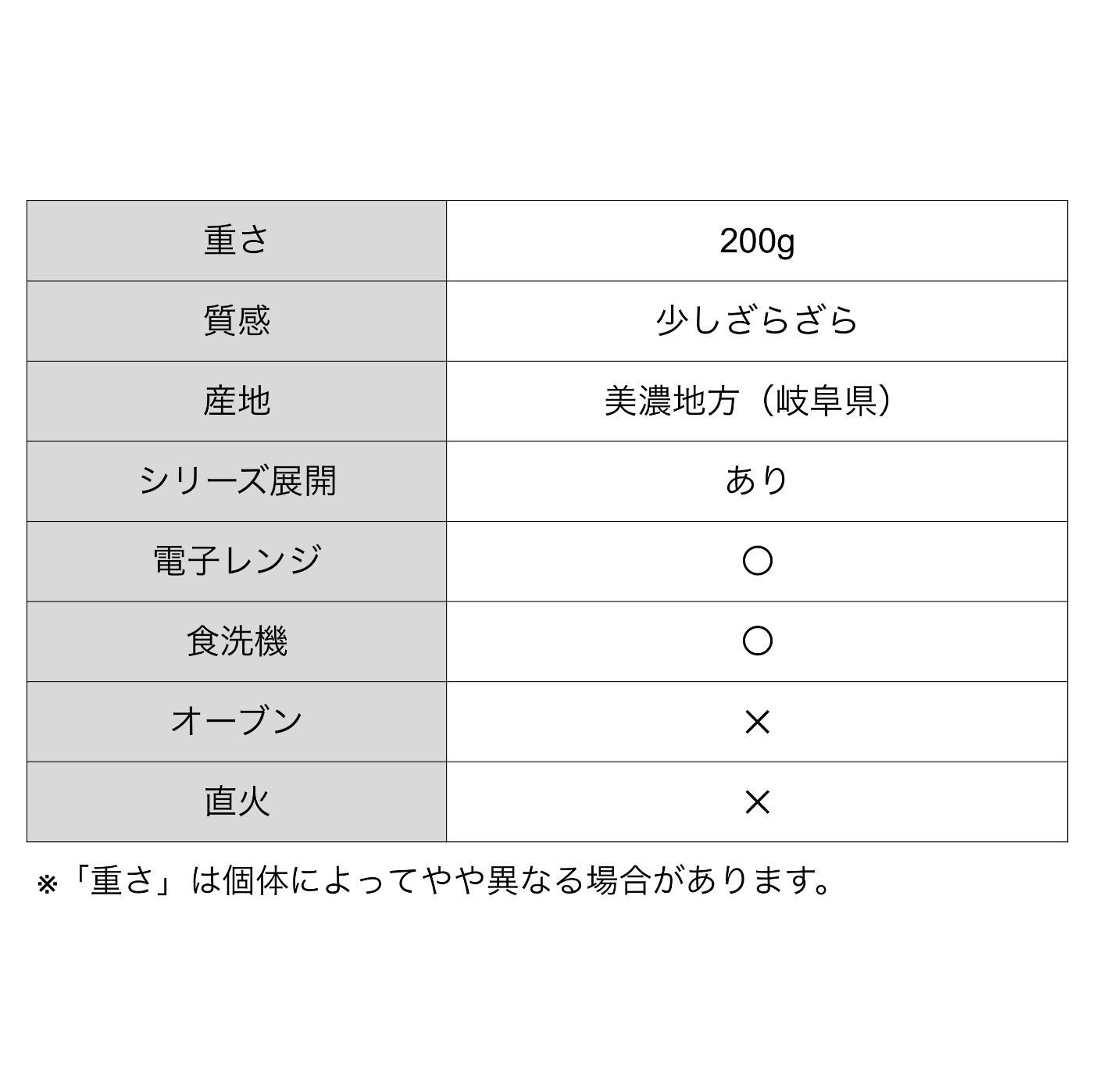 そのため、同じ商品を複数枚ご購入された際や、以前購入したものを再度購入された際、器同士で色味や風合い、釉薬のムラに差異が生じることがございます。