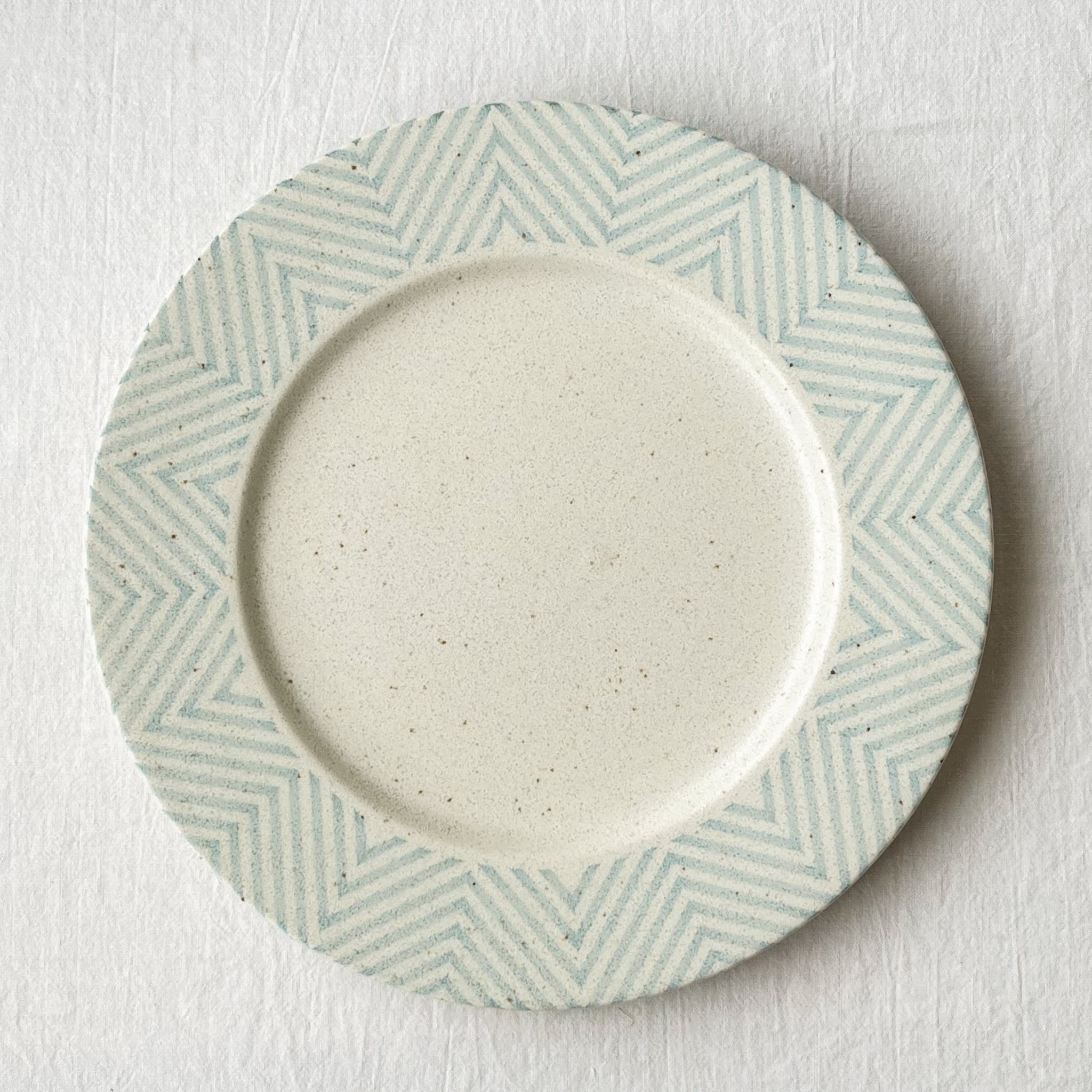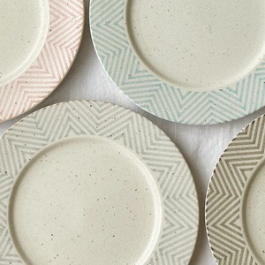 くすみカラーで彩られたヘリンボーン柄のプレ−ト。素朴な風合いが素敵です。